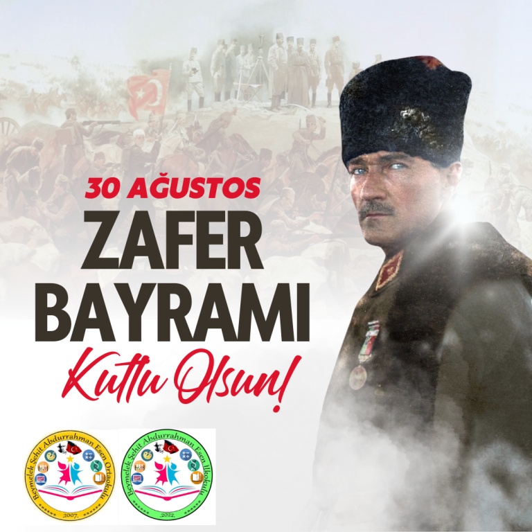 Beymelek Şehit Abdurrahman Esen İlk ve Ortaokulu olarak, Ulu Önder Gazi Mustafa Kemal Atatürk ve silah arkadaşlarını minnetle anıyor, milletimizin bağımsızlık mücadelesindeki eşsiz kahramanlığını gururla hatırlıyoruz. 30 Ağustos Zaferi, bizlere birlik ve beraberlik içinde her zorluğu aşabileceğimizi bir kez daha göstermektedir. Bu büyük zaferin coşkusunu geleceğe taşıyor, şehitlerimizi ve gazilerimizi rahmet ve saygıyla yad ediyoruz. Beymelek Şehit Abdurrahman Esen İlk ve Ortaokulu olarak 30 Ağustos Zafer Bayramı’mız kutlu olsun.